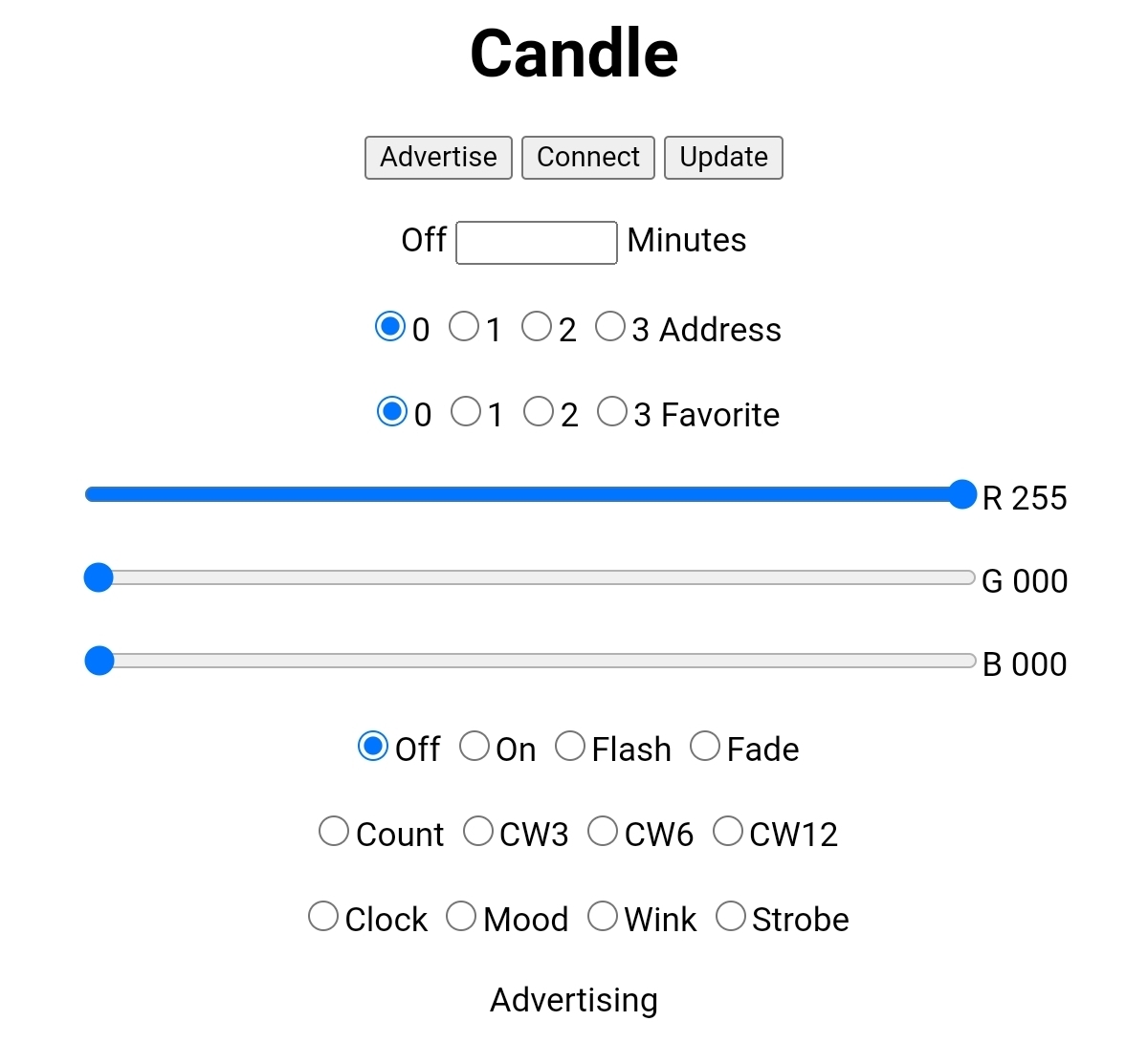 - Press; 1=off, 2=white, 3=red, 4=green, 5=blue, 6=mood