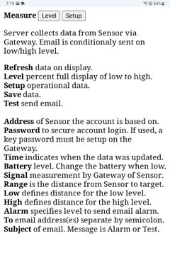 - Laser sensor mounted on inside lid of holding tank to measure level.