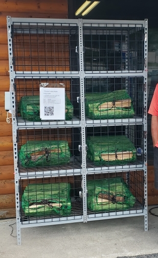 - tap credit card to open bin containing firewood. - connects to local wifi or optional LTE modem. - 12v operation with optional solar power. - LED indicates ready/processing/open/fail. - admin web interface for configure/status. - email notification when low on wood. - admin card to unlock all bins for loading.
